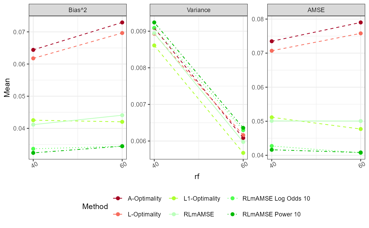 Through the estimated subsampling probabilities a sample of size \(r \ge r_0\) is obtained. Finally, the two samples are combined and the model parameters are estimated for A-, L-, L1-optimality, RLmAMSE and enhanced RLmAMSE (log-odds and power).